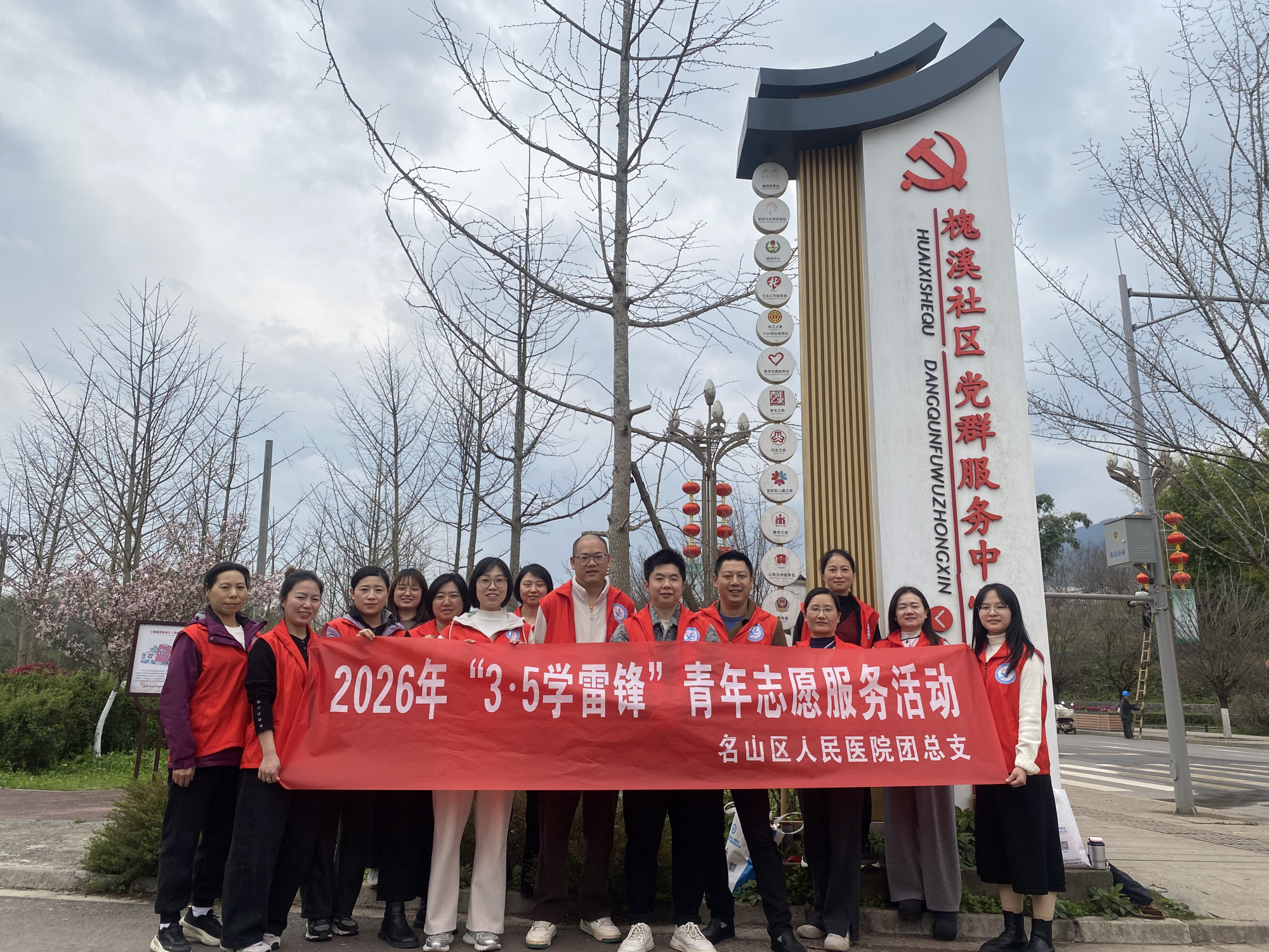 为深入传承和弘扬新时代雷锋精神,践行“奉献、友爱、互助、进步”的志愿服务理念,2026年3月6日,名山区人民医院组织10余名青年团员志愿者在槐溪社区开展以“学雷锋·文明实践我行动”为主题的青年志愿服务活动。活动当天,志愿者们身着红马甲,携带垃...