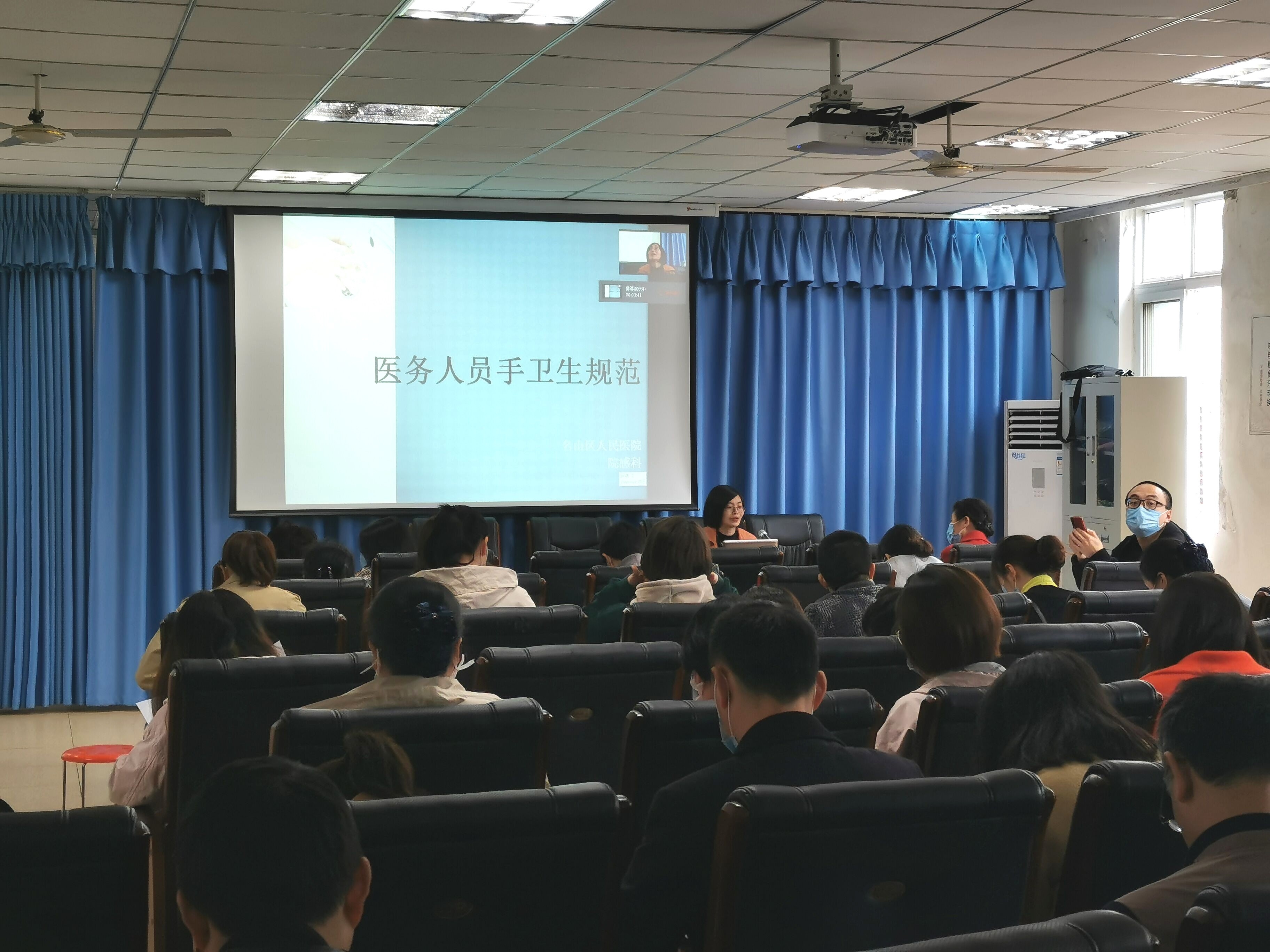 近日,院感科通过现场和“企业微信”APP两种方式,对全院医务人员进行“艾滋病职业暴露预防及处置”和“医务人员手卫生规范”知识培训,培训现场各科室负责人60余人、视频听课240余人,共计300余人参加此次培训会,会议由副院长刘漪沦主持。