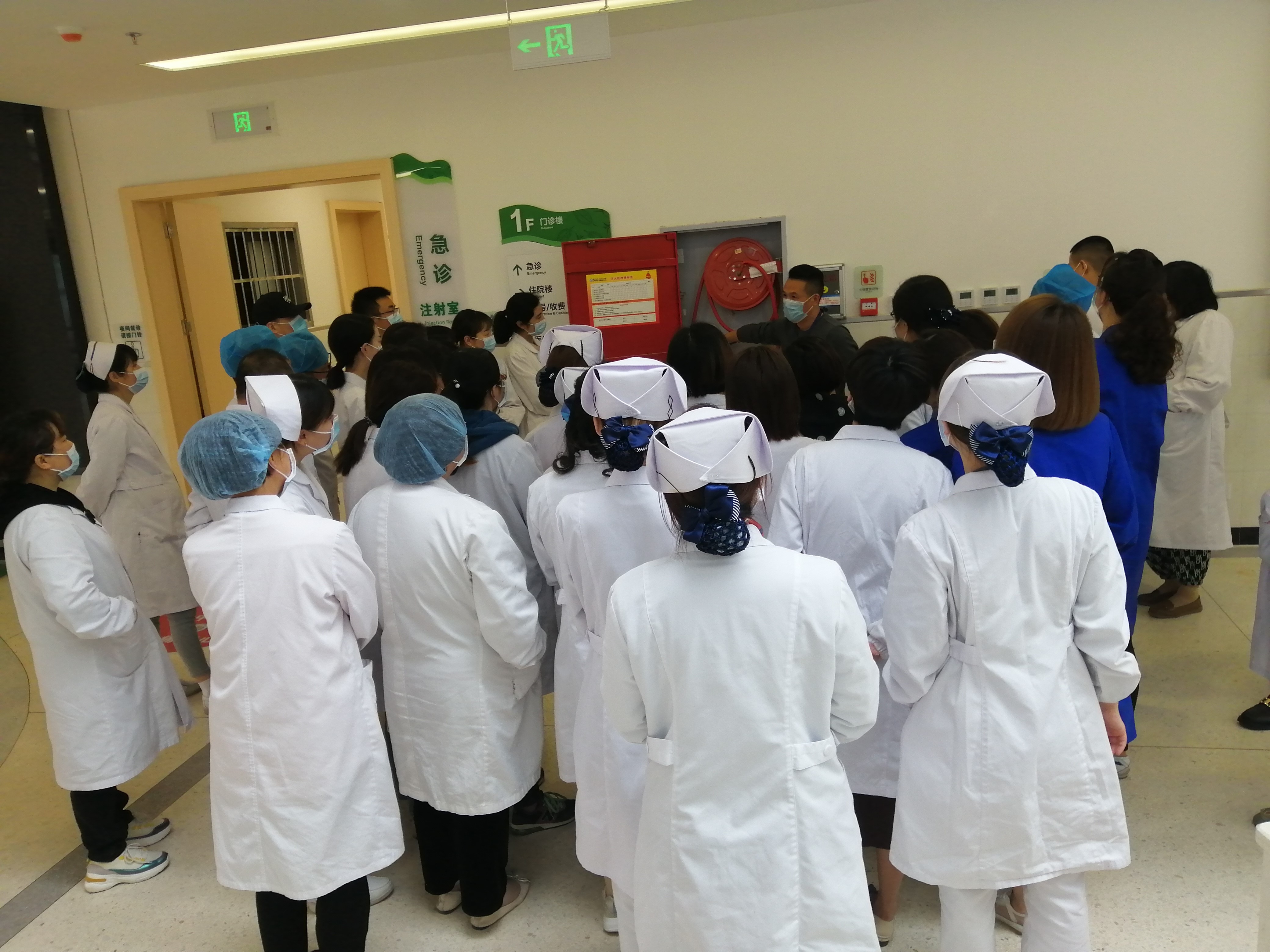 演练由门诊部组织实施,24小时病人服务中心、门三室、急诊科、收费室、医保科、放射科、中医科、检验科、病理科、功能科、妇产科、眼耳鼻喉科、体检科等80余人参加。