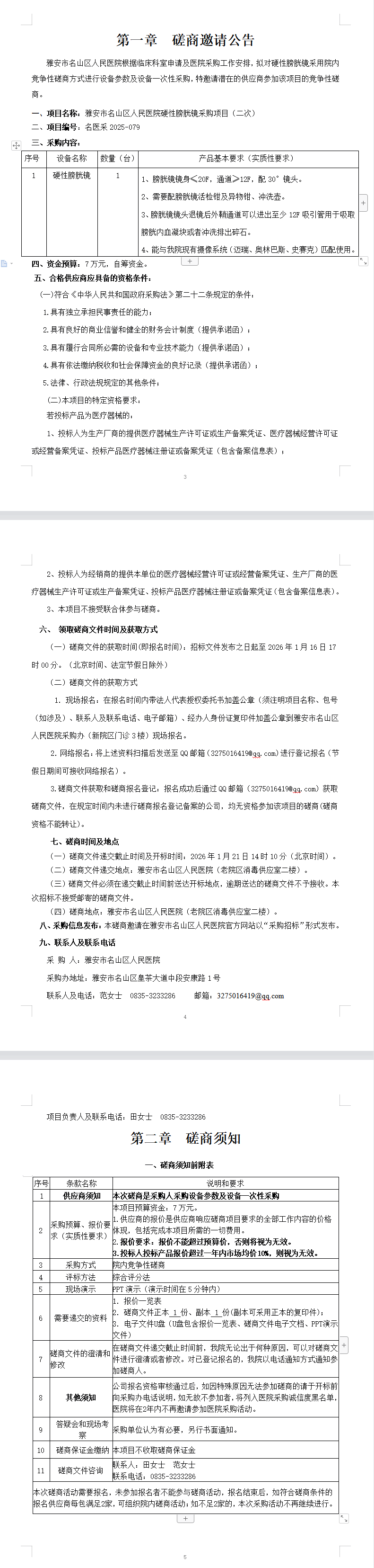 雅安市名山区人民医院硬性膀胱镜采购公告(二次)