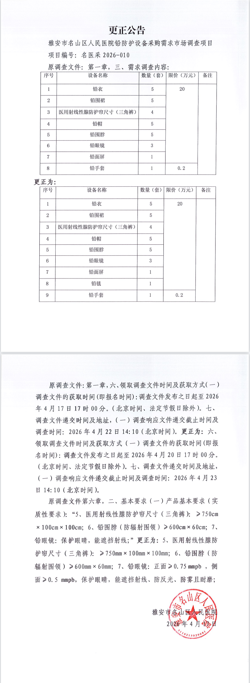 铅防护设备采购需求市场调查文件 - 第二次更正后.doc